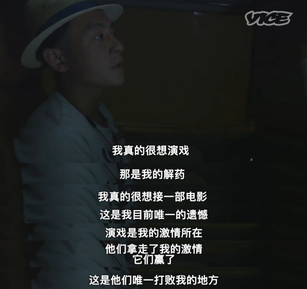 《触手可及》第三集里他无奈的说:“我真的很想演戏,那是我的解药,我真的很想接一部电影,这是我目前唯一的遗憾。演戏是我的激情所在,他们拿走了我的激情,它们赢了,这是他们唯一打败我的地方。”