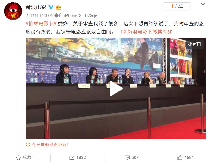 包括在柏林电影节现场,有记者问娄烨,你是怎么看待审查,他是这样说的:“我觉得电影应该是自由的。”