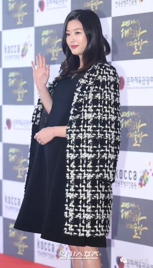 全女神身怀六甲,目测一年半载都不会有作品上映,芳综难觅。之前女神出席了韩国大众文化艺术奖颁奖典礼,穿着黑裙平底鞋依然十分优雅。