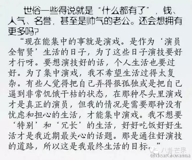 清醒的全女神没有炒恋情,因为不想个人生活过得太复杂,好好吃饭,好好生活就行,集中精力演戏。