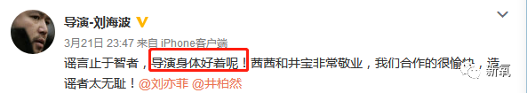 随后刘亦菲就发了呵呵哒的微博,所以应该也是侧面否认这些谣言吧。导演也亲自出来澄清,说自己身体好着呢~