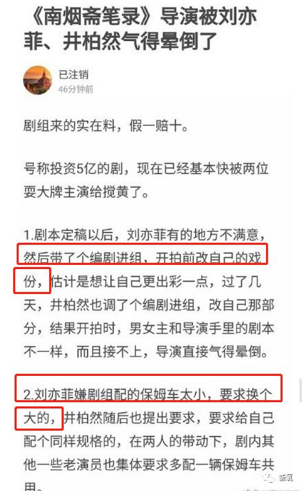 羊围观了一圈发现好像并不是,而是源于豆瓣八组的一个爆料贴:帖子的标题称,这部剧的导演被刘亦菲、井柏然气得晕倒了…爆料者言之凿凿,说刘亦菲带编剧进组改戏,还嫌弃剧组配得保姆车太小,要求换大的。