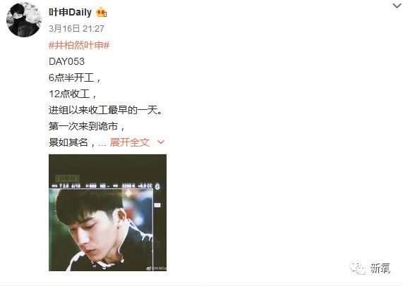 井柏然也是挺用心的,注册了小号每天都叶申日记,记录自己拍摄时的心境和感受。走心的作品,都值得期待。