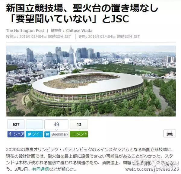 ▼还有4年,东京奥运会就要召开了,然而主办方现在才发现,主会场“新国立竞技场”竟然忘了设计火炬台,这就尴尬了......