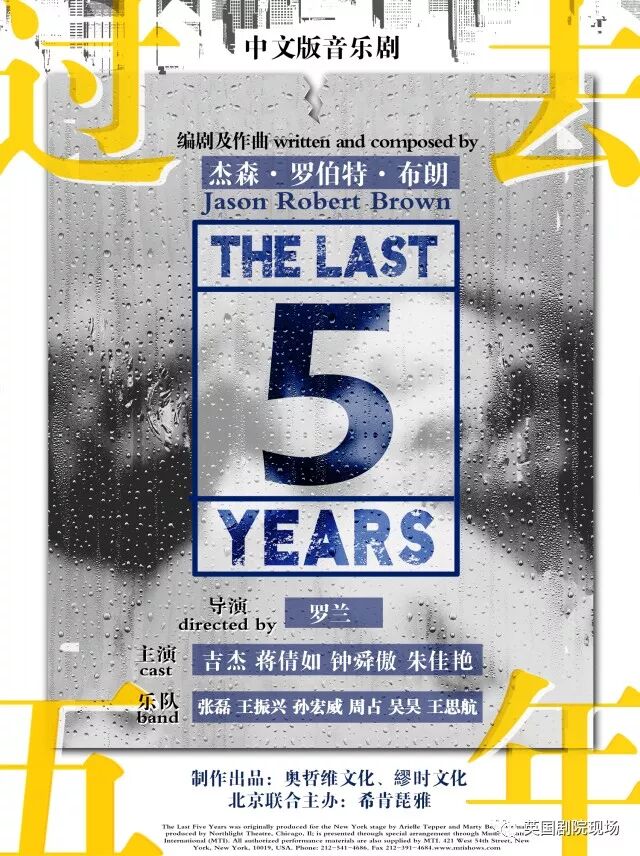 中文版《过去五年》的出品和制作方大家都不陌生。一家是将“英国剧院现场”系列引入国内的北京奥哲维文化传播有限公司,另一家则是出品了《因味爱所以爱》等中文音乐剧的上海缪时文化传播有限公司。