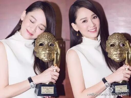 连在国剧盛典领到奖杯,也不忘了搞怪一下。▼