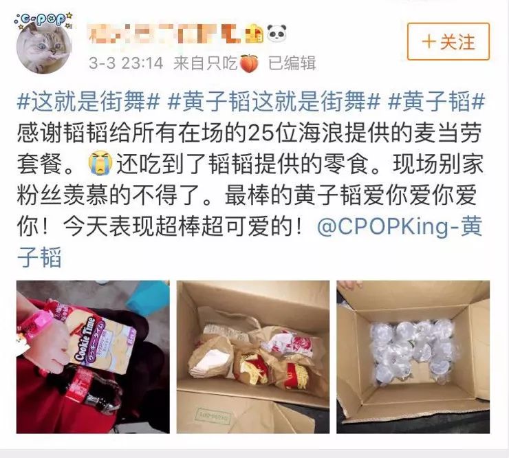 “人是铁饭是钢”,如今看惯了粉丝们买了食物、饮料送到剧组为爱豆应援,然而爱豆给粉丝买餐饮的就不多见了。黄子韬就喜欢给粉丝买食物,生怕他们探班饿肚子。