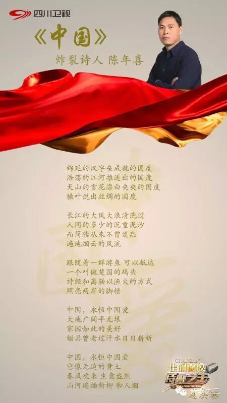陈年喜和罗中旭,一个是来自山西农村的诗人,一个是拥有浪漫情调的上海歌手。他们是所有战队里差异最大的一组,却在不断磨合中走进决赛。决赛主题“中国爱”,诗人陈年喜以自己的亲身经历感悟,绝境中在朋友自己也不富裕的情况下仍向自己伸出援手,这就是最无私的爱。