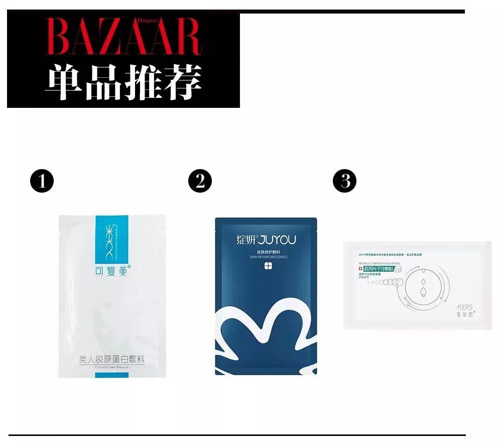 视频里的三款面膜分别是针对医美创伤的可复美,适合用在激光后的修复和脱敏;主打激光手术后修复的绽妍,含有基础保湿成分。