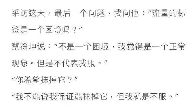 蔡徐坤说“不是一个困境,我觉得是一个正常现象。但是不代表我服。”