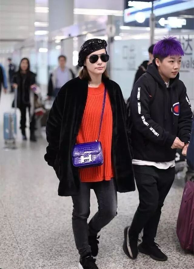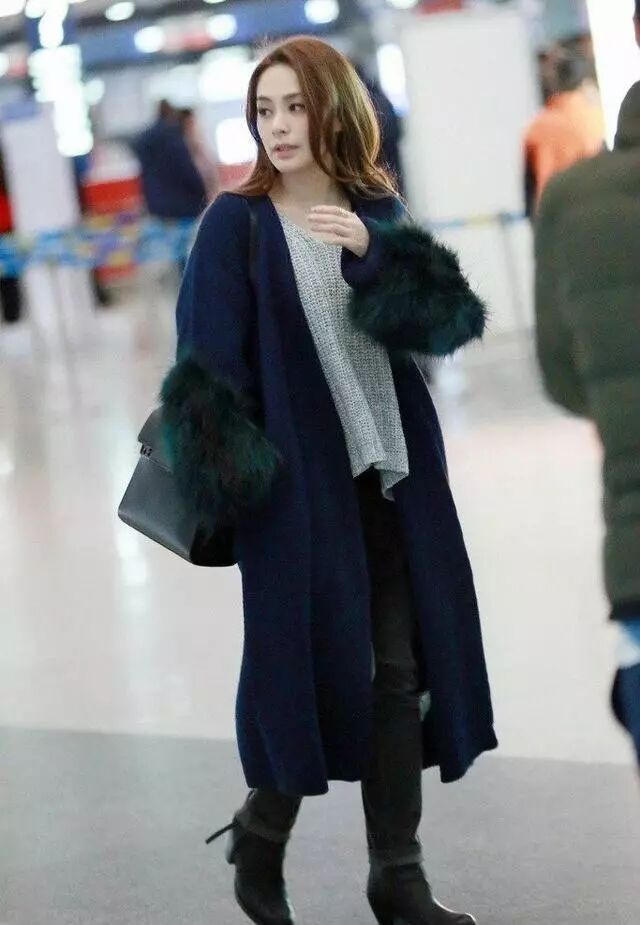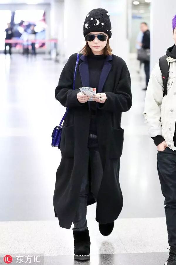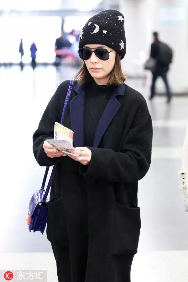现身机场的穿搭也是越来越时髦的,穿黑色长大衣内搭黑色毛衣,很时髦又显瘦呢。