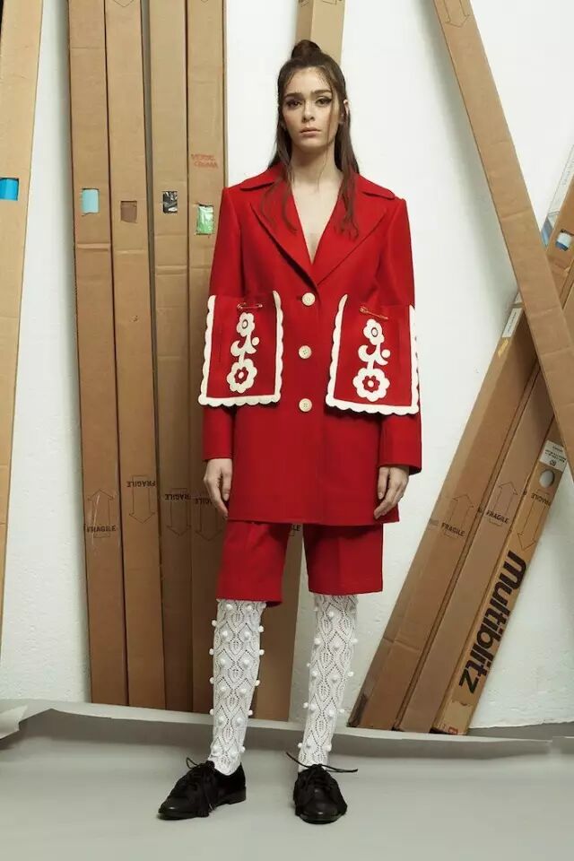 此品牌设计包括服装、鞋子,还有首饰配件等。撞色在她的设计里都是基本功,说来就来。高饱和度色彩的运用加上天马行空的设计,比如“彩虹蛋糕”、“红白钢琴键”、“爱心+嘴唇+煎蛋”。乍一看太浮夸,但说不定你身边真的有这么一个元气少女能驾驭呢~ 而且冬天正需要这样一件明亮的单品做为全身的highlight,画龙点睛!