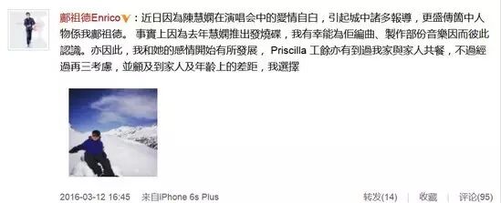 之后陈慧娴还有过两段爱情,一段是和她的美术设计师张卓文。