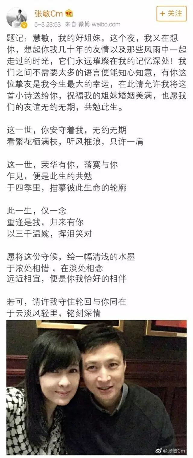 而最近一次上热搜,却是张敏发长微博向周慧敏表达姐妹情深,但也有网友认为是张敏向周慧敏的表白。