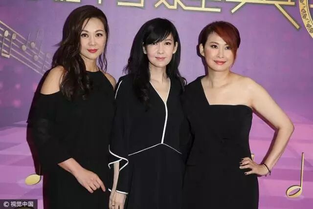 昔日“宝丽金七小花”中的三朵花重聚,三位女神不约而同身穿黑色礼服,三人风采依旧。