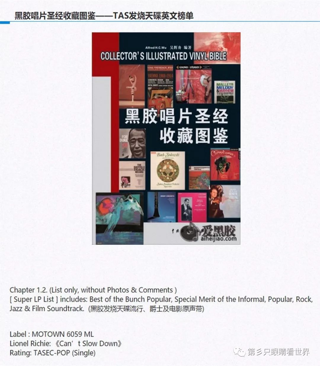 我之前提及 Lionel Richie(1949- )的那张黑胶唱片 Don't Slow Down,原来还是一张录音效果顶级的发烧碟,入选美国“发烧天书”《The Absolute Sound》超级黑胶唱片榜 Super LP List*,又是 1983 年格林美奖“年度最佳专辑”,位列“二十世纪美国最畅销一百张唱片”中的第五十六位。歌好听,录音更靓,这样的碟可遇不可求啊。(见:https://mp.weixin.qq.com/s/Ga_6Kj09zy03z96oDT0vyg)