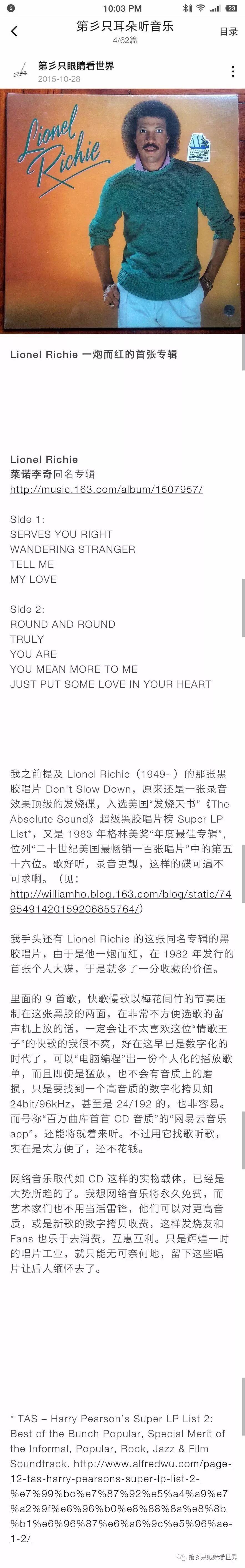 我手头还有 Lionel Richie 的这张同名专辑的黑胶唱片,由于是他一炮而红,在 1982 年发行的首张个人大碟,于是就多了一分收藏的价值。