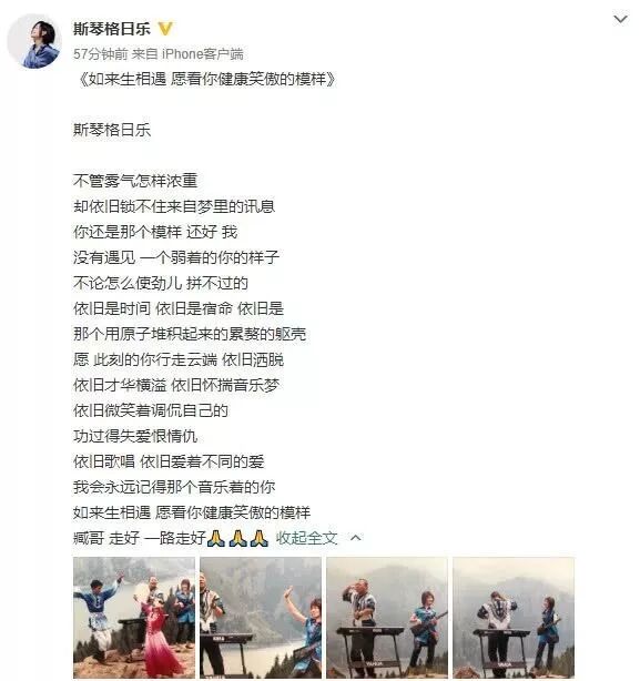 在众多的哀悼微博中,有一个人的微博格外引人注目,那就是斯琴格日乐。