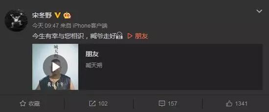臧天朔去世后,很多名人也发表微博表示哀悼。