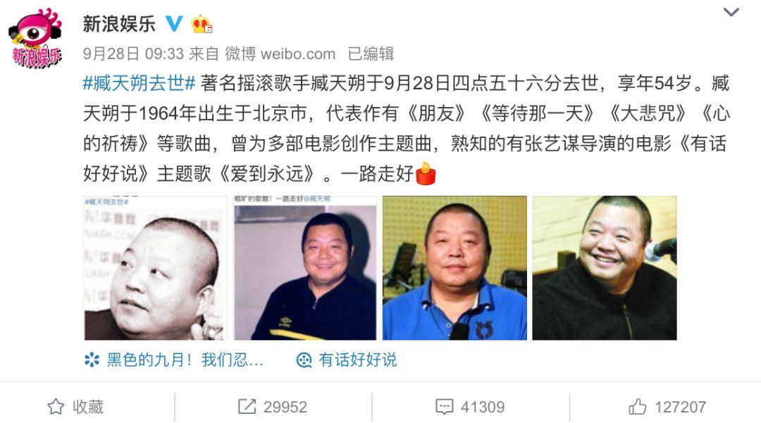 摇滚歌手臧天朔去世了,享年54岁,确实叫英年早逝。