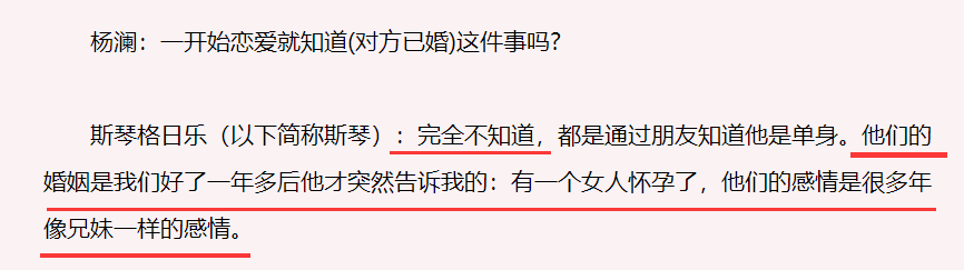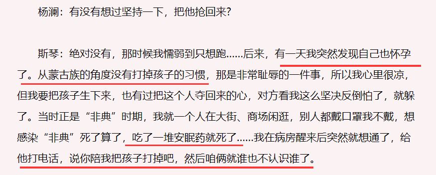后来两人很快分手,分手后斯琴格日乐接受采访,谈及当年的一段情,言语间还是充满怨恨:“如果跟你好还要欺骗你,那是不道德的”,后来控制不住情绪导致中途离场。