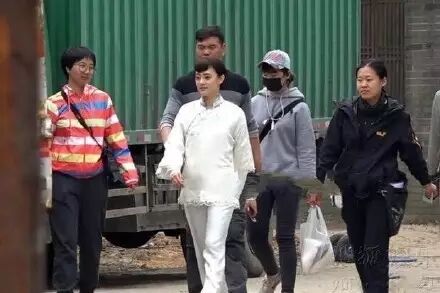 虽衣襟宽大,却可以明显看到微隆的腹部,而且身边的工作人员都一副小心翼翼的模样。