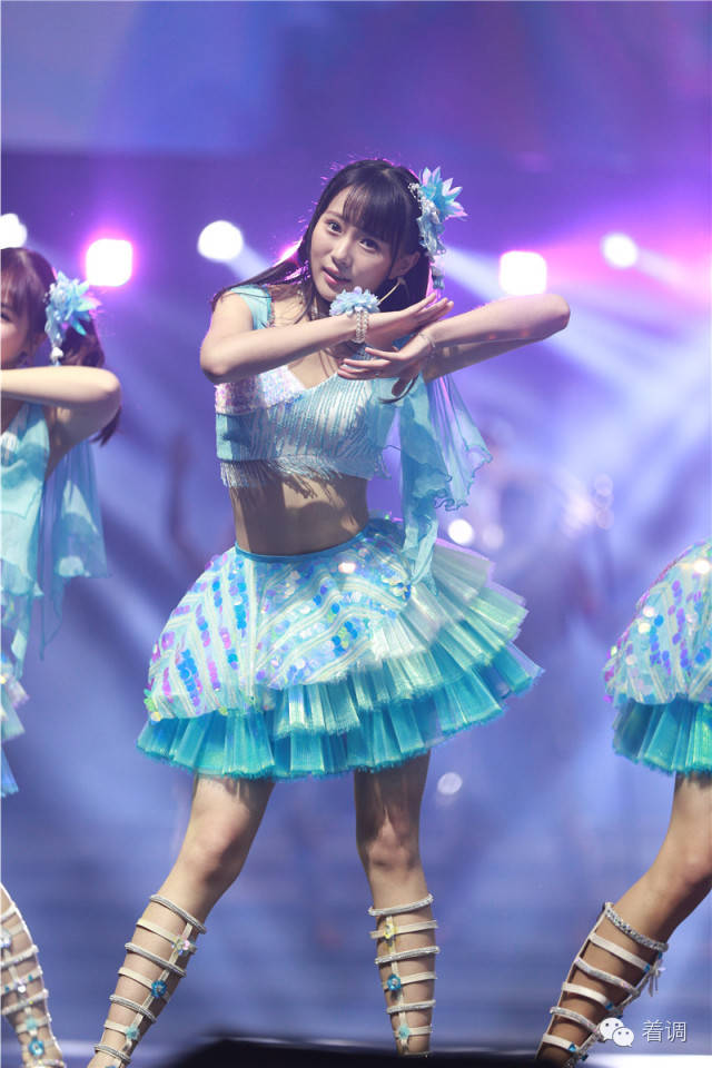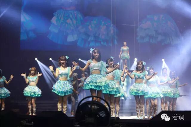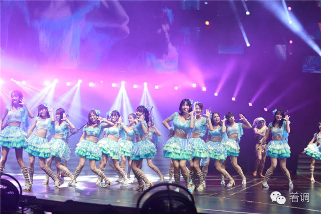 上半场为歌舞段落,第一批妹子们以蓝色露脐短裙登场,有节制地搔首弄姿,展现青春和健康的性感。