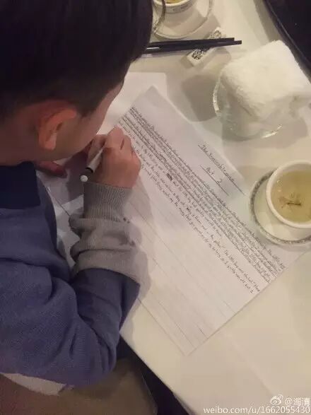 海清经常晒出儿子蛋妞照片的背影,其中有一张她儿子蛋妞伏在桌面上认真写作的照片,并留言称:“孩子太爱读书未必是件好事,饭都不吃,这还不是作业,是他自己编的故事#上天是要赐给我个编剧吗#。”照片中,蛋妞独自坐在桌前认认真真的写着文章,就连在饭桌上也不忘继续写,仔细一看,竟都是全英文写作,为了让字迹更加工整,还自己在纸上提前画好格子线,这认真的态度再加上高能的外语水平简直惊呆了围观的小伙伴们。