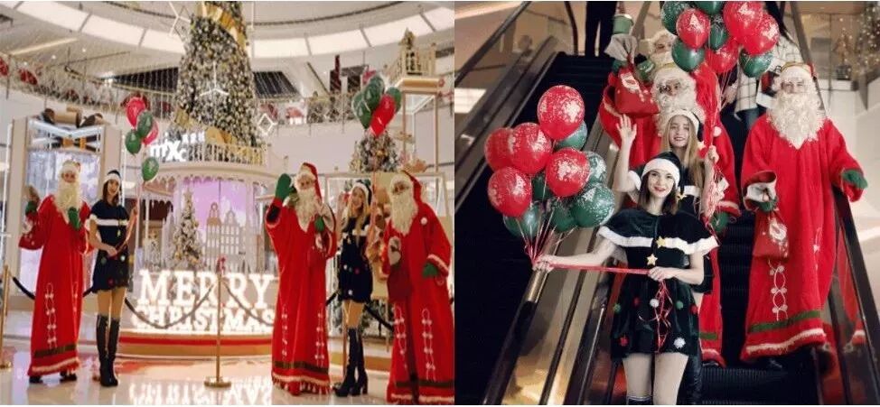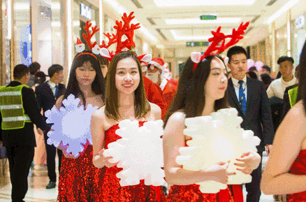 并邀请年轻男女至活动区域参与圣诞狂欢趴