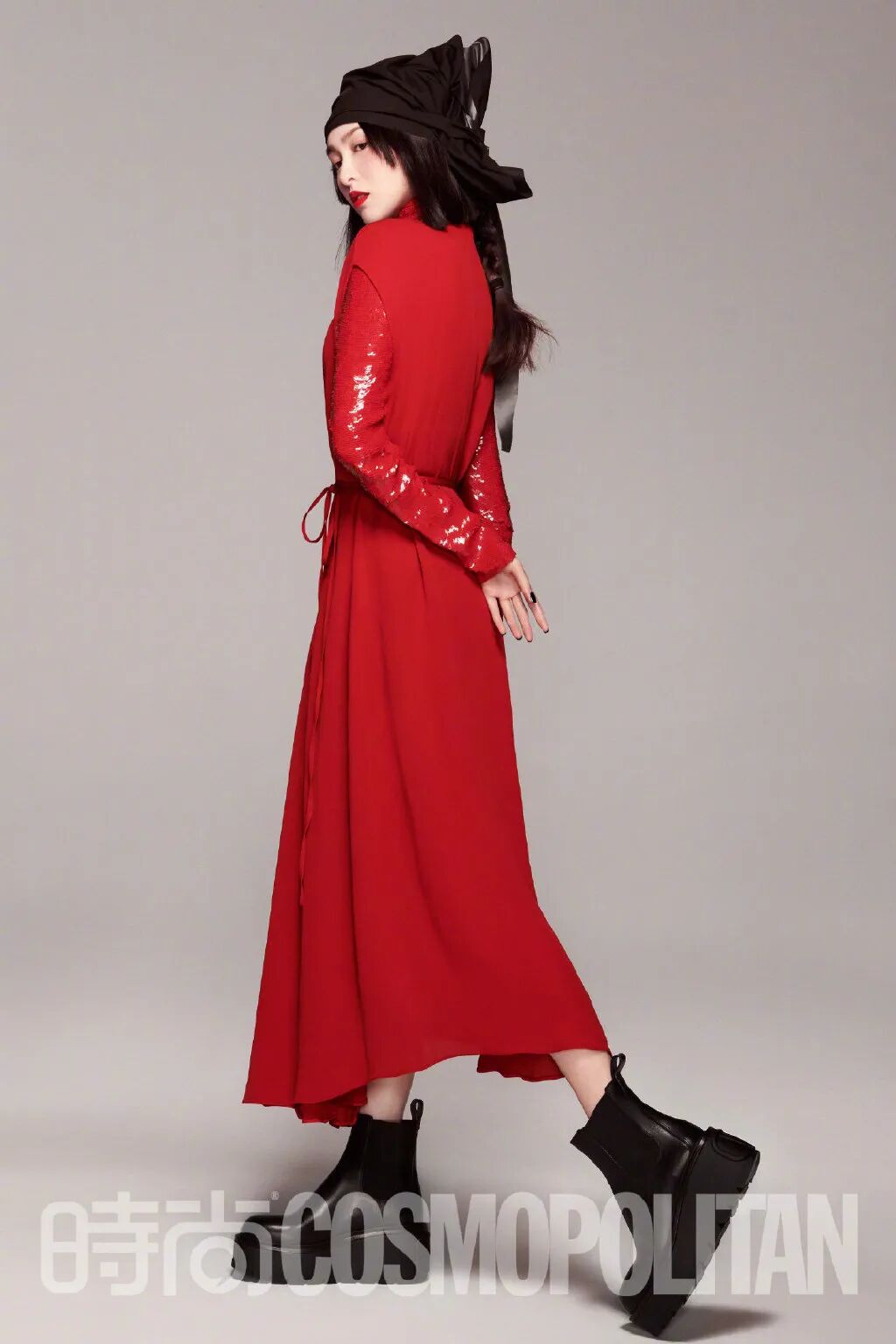 这组充满强烈视觉冲击又不失别致优雅的造型,对于唐嫣来说是一种全新尝试,也是一种顺其自然的改变。