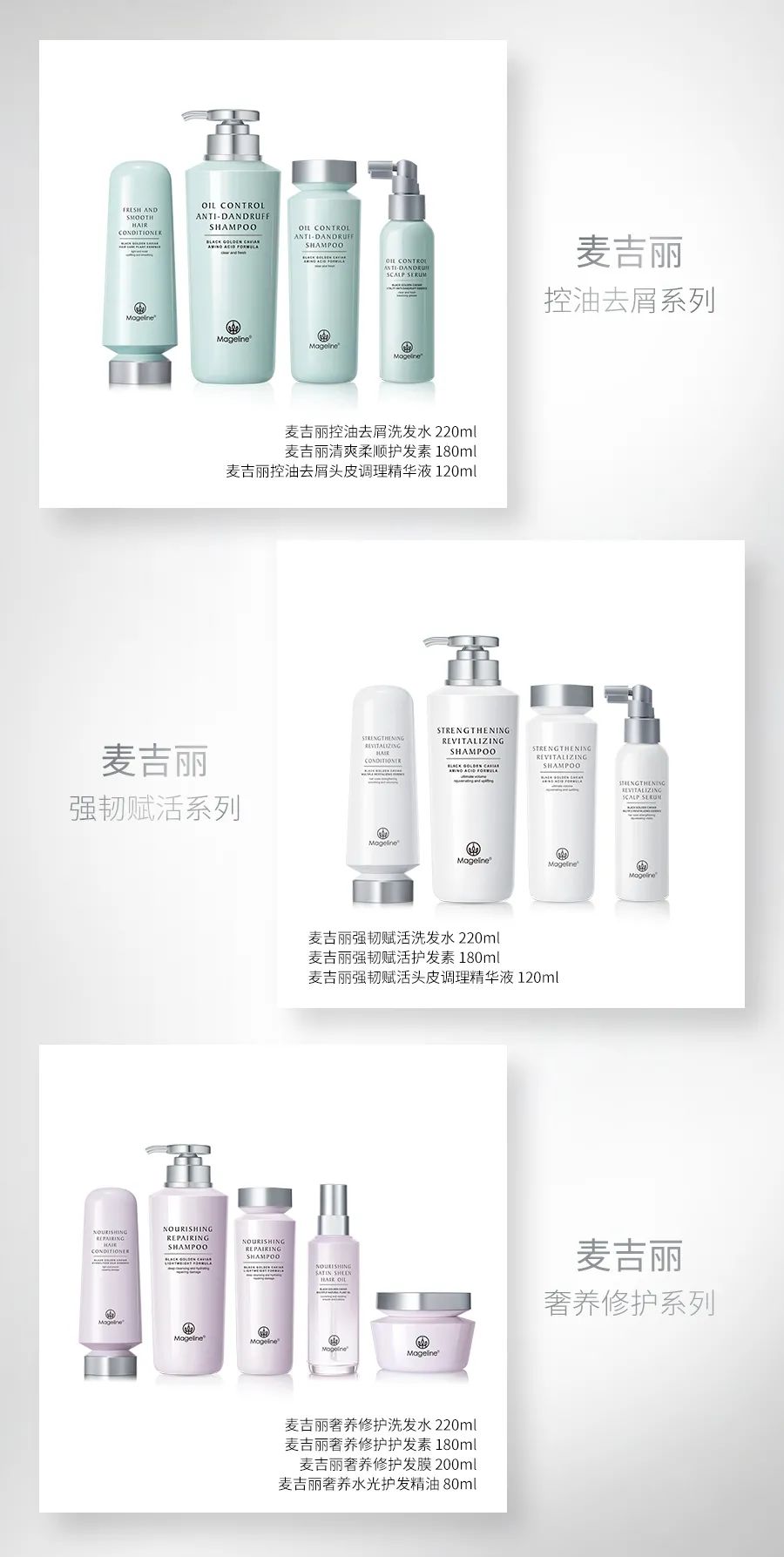 此外,麦吉丽头皮专研洗护发系列还包含适合干枯受损发质、能够密集修护秀发的奢养修护系列。弱酸性无硅油洁净配方中,浓缩黄金蚕丝、贝壳蛋白等天然修复精华,给头皮发丝双重奢润滋养,全方位修护强韧,让秀发重现迷人光彩。