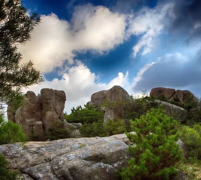 将军山北可眺坛南湾海天一色、渔舟唱晚,南可望海蚀地貌和石厝浑然天成的搭配,近处郁郁葱葱的植物怀抱着一块块经千年风雨侵蚀的岩石,日出日落皆入其景。