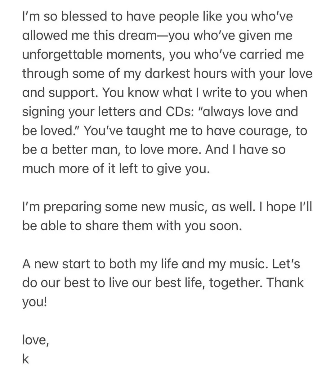 Kevin Oh 在自己的 Instagram 上公布了这条消息,两人两年前相识,一起陪伴彼此走过了许多黑暗时刻,互相帮助,共同成长。