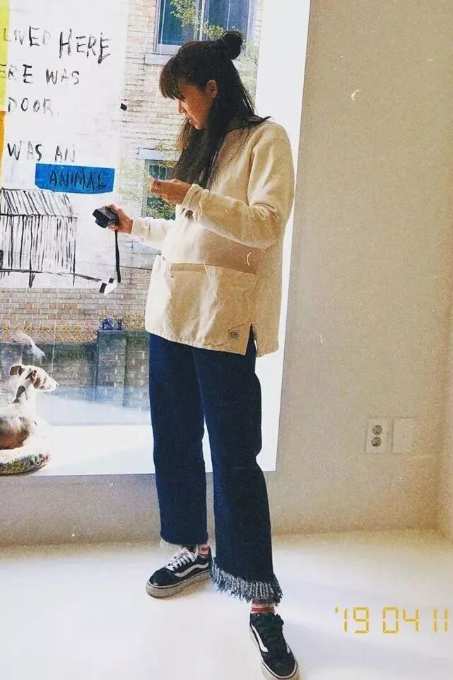 可以看得出来,孔孝真私下里的穿衣风格和大家一样,完全没有像 “女明星” 一样的出门一定要刻意打扮的光彩照人,T 恤、衬衫、卫衣、牛仔裤,简简单单。