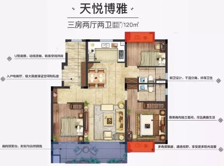 YJ115户型|三室两厅两卫|建筑面积约115㎡