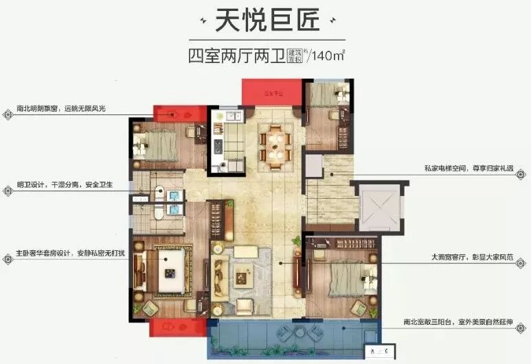 YJ140户型|四室两厅两卫|建筑面积约140㎡