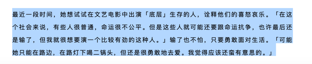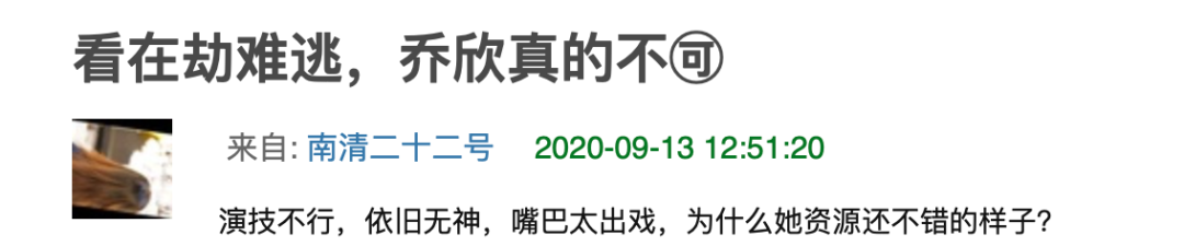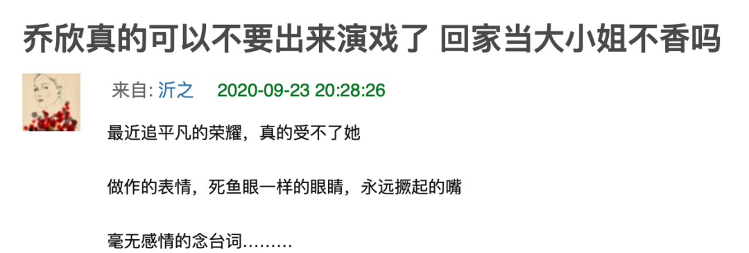 乔欣,醒醒,你不是性感尤物 一点也不八卦的show一点 内地女星 2020-12-10 21:38:22 2317 创作不易,用心坚持,欢迎请BaGua喝几杯爱心咖啡!打赏并支持本文 打赏并删除本文 2020年最后一个月,乔欣又一次道破人间真相:你没发现嗑cp最起劲的都是没有爱情滋润的人吗*摊老师给我们跨年活动录了ID开心*因为这段话,乔欣被骂惨了。很多人说她情商低:话说的很对,但听起来并不舒服▼▼▼这段采访呢,是乔欣在宣传新戏《小风暴》时说的,我看了视频,其实她只是自嘲,并没有内涵网友,所以也没必要自己玻璃心往上撞。但这不是乔欣因为《小风暴》第一次经历风暴。从开机到官宣到播出,《小风暴》就备受瞩目——cp可太好嗑了!我终于get到胡一天的港颜风了▼▼▼写了一半,看到有粉丝在昨天丁辉那条下面留言▼▼▼em,我是真没想到居然胡一天演过了乔欣……▼▼▼这次,乔欣这个角色挺出彩的,在cp滤镜的加持下,演好了大概率能小红一把。林沃,白富美+职场女强人,精明能干,情商高,有阅历,有手段,讲义气。工作能力强,关键时刻还能手撕渣男,不傻白甜▼▼▼上一款差不多的角色红利印象中是秦岚吃到的,但秦岚用演技消化得多好啊。到了乔欣这里——她就是尔冬升口中,不会控制五官表情的演员。演员,最怕观众没印象,但如果每次一说到这个名字,观众就自动关联【无神的双眼】,也会心中一冷吧。晚上看效果奇特的出圈神图▼▼▼这扇心灵的窗户让她备受争议。上眼睑提肌无力遮瞳孔+下三白+瞳距宽,导致看起来总是睡不醒的样子▼▼▼这两年,微调了上眼睑再加上化妆术精进后,眼睑下垂的状况明显改善了,素颜甚至比以前化了妆的还有神▼▼▼#但乔欣是否认微调了的,并拿所有的包发誓#▼▼▼只是,有了眼神不等于眼中有神(采),大部分时候,她的眼里还是缺乏情绪和层次,不够活,嗯,偶尔还是盲人▼▼▼更虐的是,继眼睛之后,大家又注意到了她的嘴▼▼▼乔欣的嘴,无时无刻不在用劲儿,紧紧抿着,看着非常憋屈▼▼▼嗯我缝起来了我就是不想说▼▼▼表演【愤怒】时,嘴巴就更用力了,连带着鼻翼问题也突出了▼▼▼手撕小三渣男,明明很爽的戏码,但一看嘴……瞬间没那么爽,泄气了!▼▼▼脑海中再次浮起尔冬升的脸:你演得很吃力,我看得也很辛苦。那么努力地咬牙切齿,气场……有点分不清谁是正宫▼▼▼再往前,乔欣在2020年还拿了两个好角色,但,都没完成好。和鹿晗的《在劫难逃》,出演隐藏最深的“凶手”孙晓萌:看似温柔明媚,实则是暴躁不好惹、为了报仇可以抛弃友情和爱情的狠角色▼▼▼《平凡的荣耀》,是美强惨的底层实习生兰芊翊:聪明、优秀、通透,想在职场发光发热,却受到排挤,替上司背锅背成伙夫▼▼▼看得出来,乔欣对这两个角色还是挺满意的。她觉得自己演出了深度,说在自己的眼睛里读到了复杂▼▼▼你怎么读的?大部分时候,观众读到的还是迷茫,不知所措,以及……使劲皱着的嘴▼▼▼再再往前,演关雎尔时,其实乔欣也是姐妹花中相对最不ok的。只是,人设贴合度高,虽然她愁眉苦脸地用一个表情演完了一部戏,但出戏的观众比较少▼▼▼这些年,乔欣陷入了怪圈。她很努力地想摆脱【乖乖女】的形象▼▼▼结果说来说去还是一个《欢乐颂》的关雎尔▼▼▼首先,我们不否定她的努力,相比很多只关注妆容的女演员,乔欣有好好钻研角色。剧播完后,她会写很多真情实感的小论文。字里行间,看得出她对角色的喜爱、拍摄前的忐忑焦虑。譬如,为了体现孙晓萌的阴郁状态,她瘦到91斤,把剧本翻烂了▼▼▼但还是我们老生常谈的那个话题:不是用功了努力了就有演技的。一缺天赋,二没积累——选择的角色和乔欣自身的阶层、经历相差太大,让本不富裕的演技更是雪上加霜。一个好演员,肯定需要在生活和实践中领悟种种情绪,进入表演状态,这是创作的土壤。譬如张颂文,就非常强调【生活】和【经历】:“戏从生活中来,所以我必须要接触生活。正因为没有少年得志,才恰巧给了我一个很大的空间,可以自如地去观察人和生活,所以我就吸收了一些很真实的影像,储存在大脑里。”从小被呵护长大想什么就有什么的乔欣,看到的太少,体会的无奈更少,如果本人没有非常敏感细腻的神经,很难展现出角色的多面性。乔欣,17岁以专业第一名的成绩考进中戏,是刘天池班里最小的学生,总是被大家照顾着。19岁,就正式出道,出演了《七九河开》的青年曼珠。第一次拍戏,碰上小兴安岭这么个环境,冷,住的地方又破,乔欣每天都在哭。一回,冻发烧了,她哭着打电话回家,心疼的奶奶行动力超强,大老远跑来剧组探班▼▼▼看完工作环境,奶奶就对乔欣说了一句:别干了,不要难为自己▼▼▼拍完这部剧,乔欣手指有点冻伤。为此,一年都没有再拍戏▼▼▼再后来,她拒绝了很多经纪公司。不是公司不行,而是怕自己没干几天就干不下去了,“那就把别人公司给坑了。”看到她的性子温润,刘天池怕她被欺负,就把她介绍给了好友孔笙。所以乔欣没经历过递简历、跑面试等等求职焦虑,一毕业就和正午阳光这么好的大单位签了约,接连拍了《欢乐颂》《琅琊榜》。所以,乔欣说自己完全没有出社会的感觉,正午的工作氛围很好,不会有人要求她怎么去走红,怎么赚钱,侯鸿亮还会帮她选剧本▼▼▼《欢乐颂》火了之后,她也没想着多拍几部戏,觉得应该趁年轻多玩玩,开心是最重