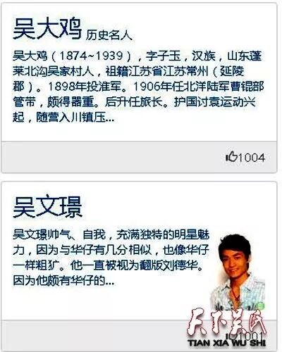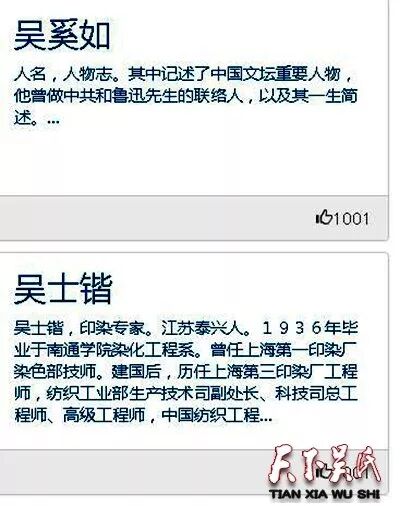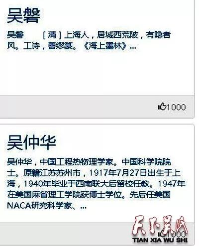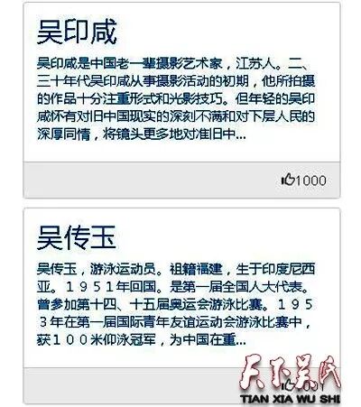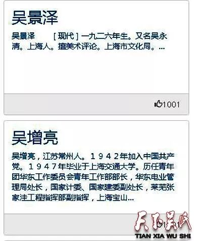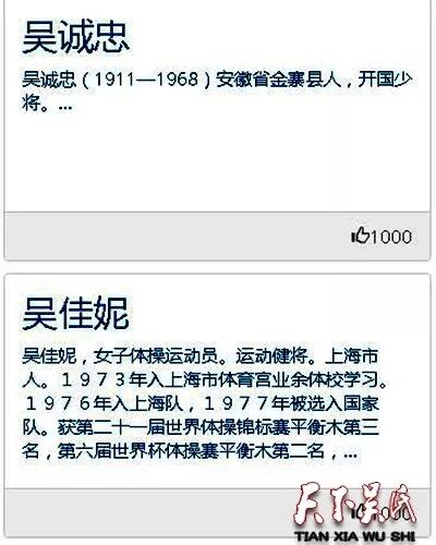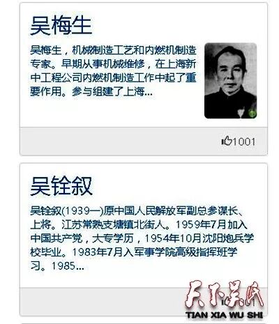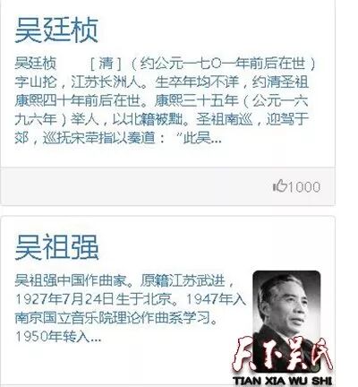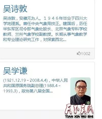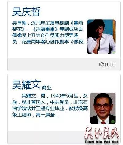 吴姓现代人物:吴邦国、吴伯雄、吴墩义﹑吴官正、吴学谦、吴桂贤﹑吴仪、吴基传、吴胜利、吴健雄等。