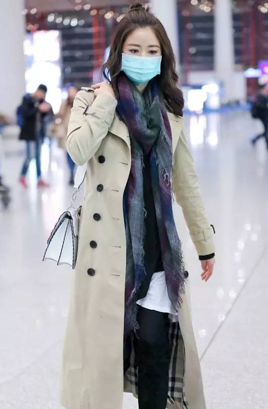 被拍到的机场LOOK,她身着Burberry卡其色风衣,超长款式不仅走路带风,搭配黑色内搭和过膝靴更显优雅干练。又巧用半丸子头实力减龄,这从哪能看得出是生完娃的妈妈?