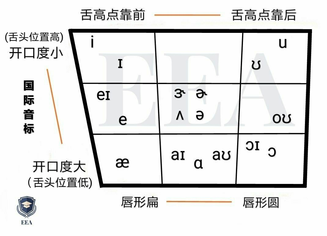 (元音梯形图可以很好地帮助大家区分元音)
