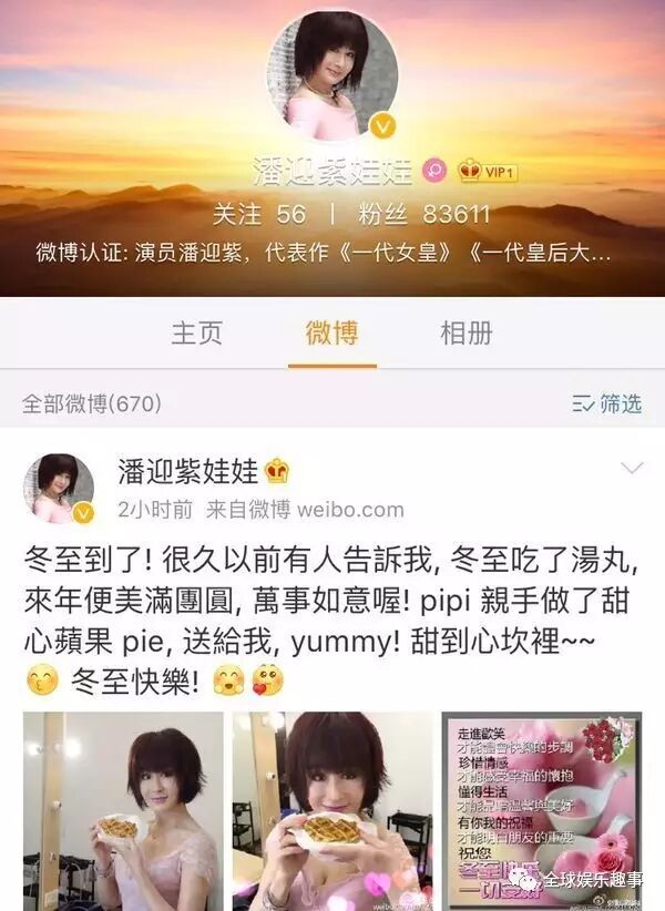 沉寂了两年多的潘迎紫再次回到微博,一组近照全国网友皆给潘奶奶跪了!
