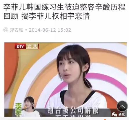 之后去韩国进行了歌唱和舞蹈的培训,后来在节目上李菲儿表示“因自己的鼻梁比较塌,所以公司要求隆鼻。”也是很悲催,整形加辛苦练习最后组合被公司解散。