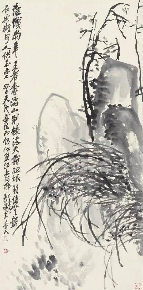 《水墨兰石图轴》