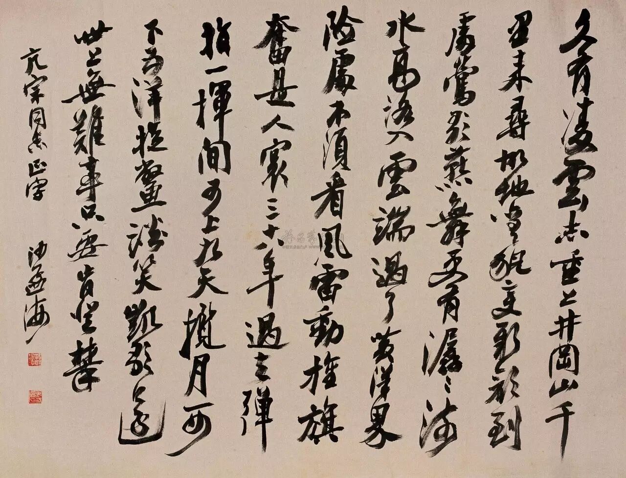 第五类属于高士狂士一类,不修边幅,视金钱如粪土,寄兴于笔耕,虽订有润格,但完全超然物外,不按常规出牌,应与不应随个人心情而定,尽管技压群雄,由于他们的状态和职业书画家不同,他们应该是几类人里最特殊的人群。