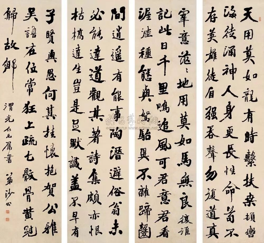堂匾三十两、斋匾二十两、楹联三尺六两、四尺八两、五尺十两、六尺十四两。横直整幅三尺十八两、四尺三十两、五尺四十两、山水视花卉例加三倍,刻印每字四两,题诗跋每件三十两、每两作大洋一元四角。