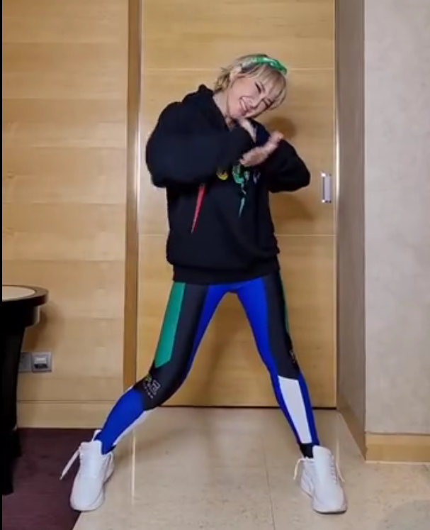 她的身材一直以来保持的都是挺不错的,其实也离不开她平时的锻炼,就像这个时候她是在家里面锻炼自己的身体,而且是在录视频。可以看到上半身穿的是一件黑色的背心,下面搭配的还是一条比较有弹性的裤子。
