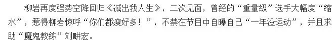 被怀疑是不是爆肥,正常套路是谦虚否认“不不不,人家瘦着呢”,柳岩又在节目自曝“一年多没怎么运动了”,这不是无意承认了发胖事实嘛?!