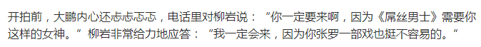 不管成名前还是成名后,柳岩对待朋友始终如一。他们有需要招呼一声,哪管角色大小、钱多钱少,她都尽量仗义相帮。