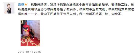 这可能就是鱼与熊掌不可兼得吧,总是要有人做出牺牲的。但小编认为,谢楠的这个想法是可以理解的,但具体生不生也不能光是她个人说了算。