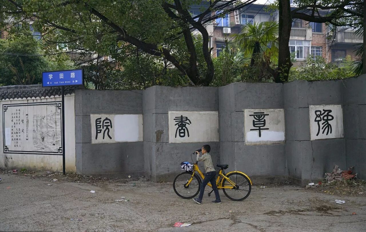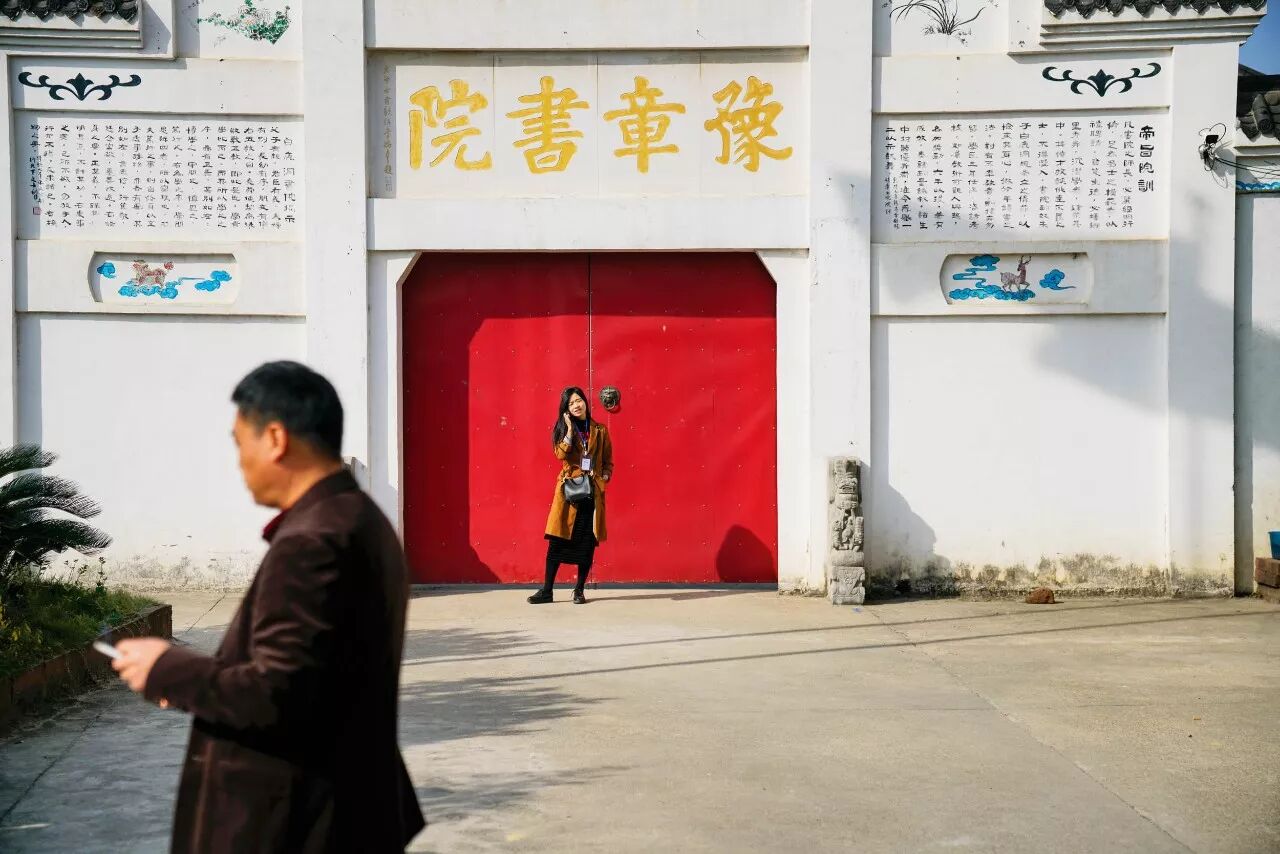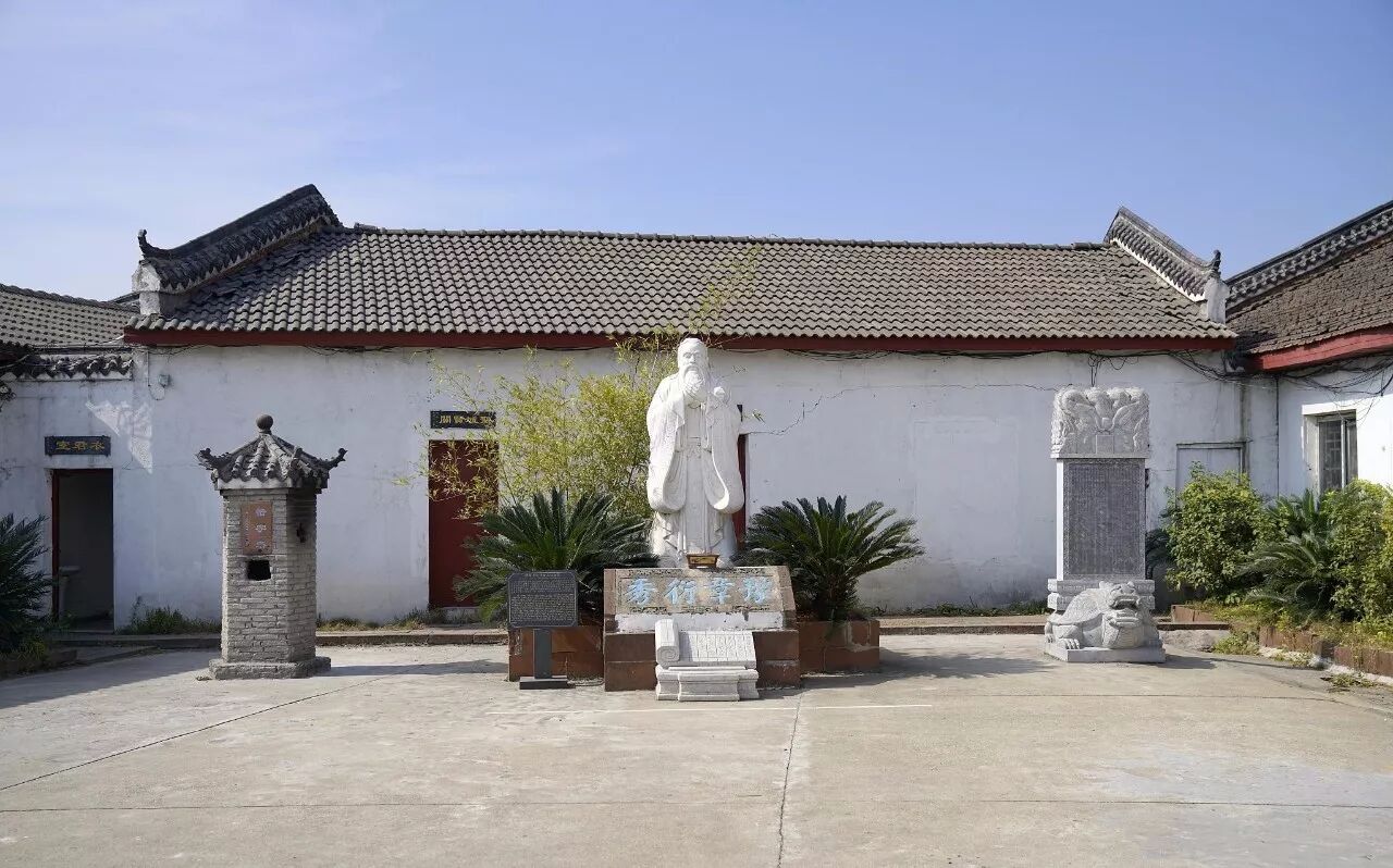 在南昌市青山湖区罗家镇儒溪吴村的民宅间,略显突兀的徽式建筑便是豫章书院,仿古楼牌后是一个大院,院中空地摆一尊孔子像。